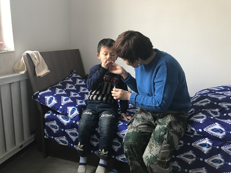 作为单位第三批参加民族团结“结亲周”活动的干部,阿依吐拉·阿力木和同事们一起在托管中心照顾这些孩子们。刚到托管中心的第二天,阿依吐拉·阿力木就发现有部分孩子有感冒的症状,因最近病毒流感十分厉害,阿依吐拉·阿力木和同事们当即决定给生病的孩子们吃药,以防病情严重。