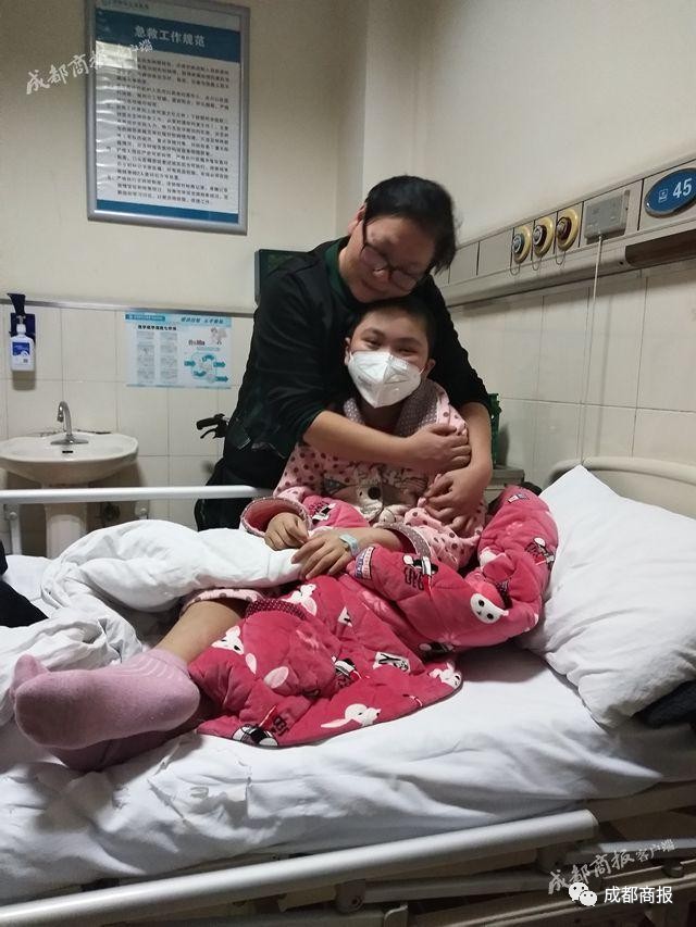 ▲患白血病的11岁女孩小霖花和妈妈