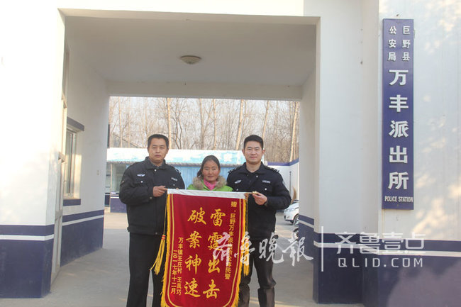 近日,巨野县万丰镇王庄村村民王某将一面写着 “雷霆出击,破案神速”的锦旗送到了万丰派出所,以此感谢民警为她追回被盗的手机。