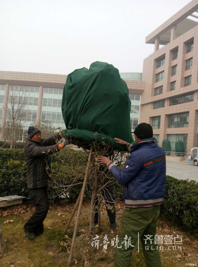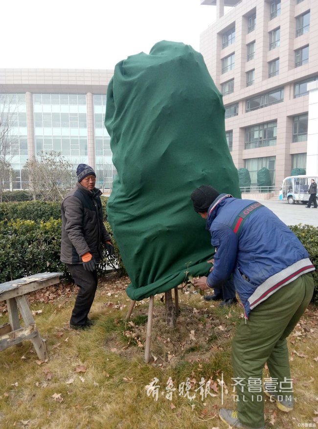 2017年12月30日上午,壹粉“完美视界”向齐鲁晚报官方新闻客户端齐鲁壹点情报站发来一组趣图,随着天气逐渐变冷,一些名贵树种也开始穿上“防寒服”了,以度过这个寒冷的冬天。