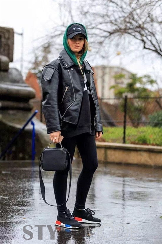 喜欢帅气风格的女孩,皮衣外套万万不能错过,强烈的酷炫街头风碰上休闲运动的卫衣,火花四溅,只剩潮范儿,黑白下装都很出挑,年轻又有魄力,让人忍不住想要多看两眼。