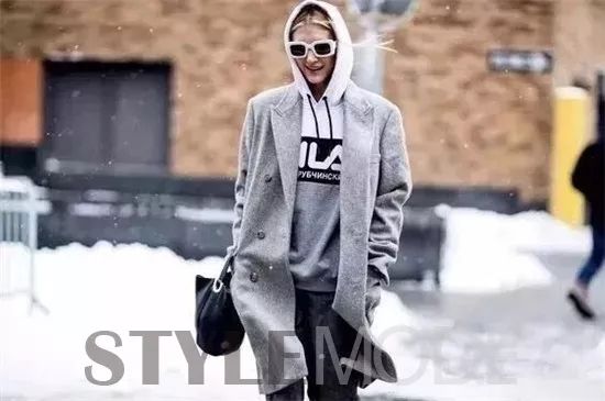 大衣除了高领毛衣,你还可以来点新鲜的,在编辑看来,卫衣就很不错,而且更时髦更有范儿!长长的外套和卫衣不同色系,碰撞出别样的精彩,在冬季惹眼程度倍增。