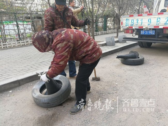 原标题:城管出马,一上午拆了50余处地锁地桩