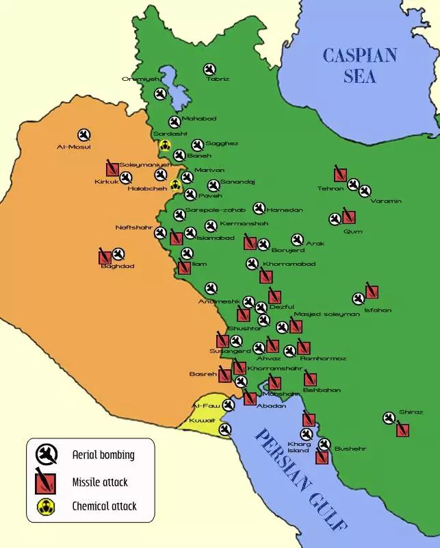 为了面对伊朗军疯狂的肉弹,伊拉克频繁使用芥子气等化学武器,屠戮了超过8500名伊朗人。这一下作的反人类暴行,后来被用于对付伊拉克国内的库尔德人。