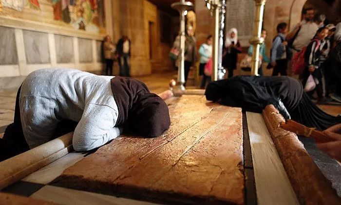 后人便在其受难地点建造了圣墓教堂,还将托载遗体的石头供奉起来。