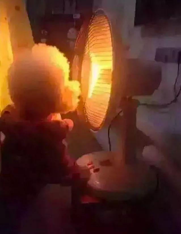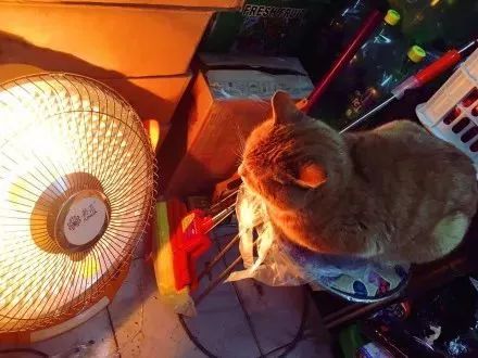 抄着手蹲在电暖器前面
