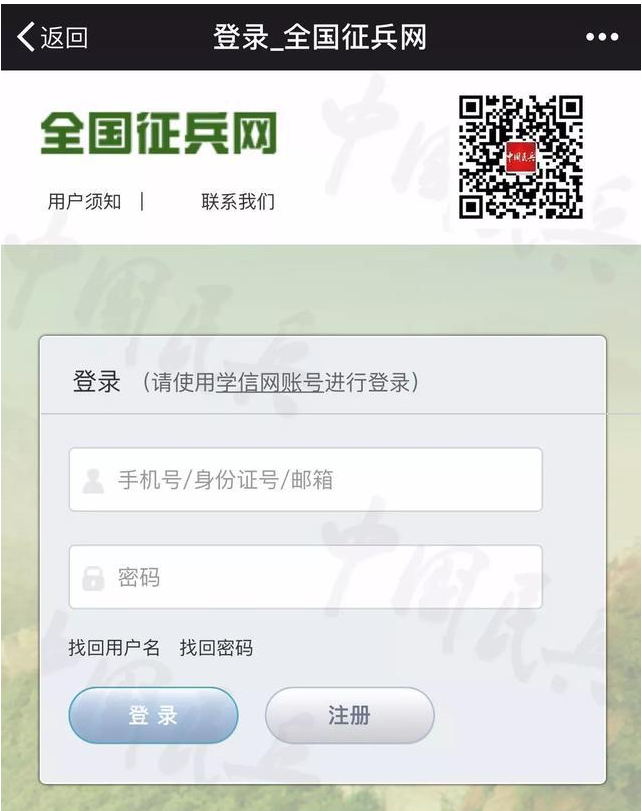 1月9日,从河南省征兵办传出消息,2018年全国兵役登记工作正式启动。2018年12月31日以前年满18周岁的男性公民,请在2018年6月30日以前,登录全国征兵网(https://www.gfbzb.gov.cn/)进行兵役登记,中国民兵公众号开通相关链接。