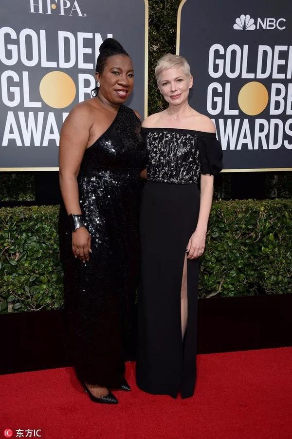 值得一提的是,去年韦恩斯坦事件给好莱坞敲响了警钟,本次金球奖几乎所有影人都以黑色礼服亮相红毯,旨在 打破沉默,抵制行业内任何形式的性别不平等。
