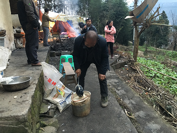 “还剩三个找不到,我们就觉得要遭。”郭天怀说,他们只好先去接水灭火。自来水不够,就拿粪水往火里浇。