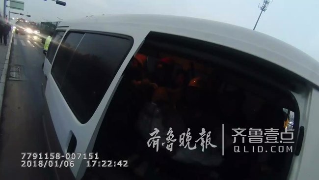 让民警惊讶的是,这辆核载9人的面包车,加上司机密密麻麻 地竟然乘坐着22个人,有侧身坐的,有前后交叉坐的,还有席地 抱膝坐的。