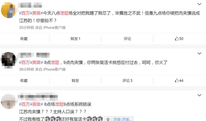 原标题:肉夹馍是江苏的?《百万英雄》现奇葩答案还被指泄题