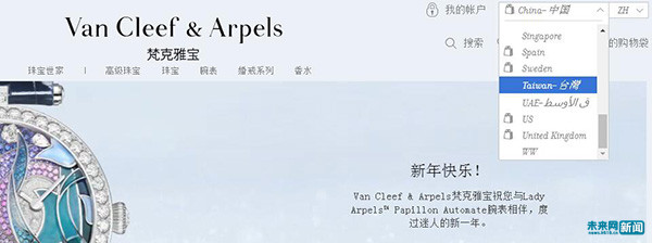 另外记者发现,珠宝企业宝格丽、梵克雅宝的中文官网上,也出现了将“中国”和“台湾”都列入“国家”列表的问题。