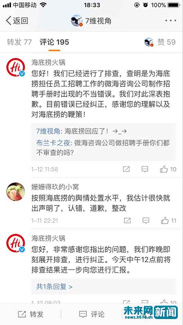 海底捞以评论的形式回应道歉 网友指其态度不诚恳