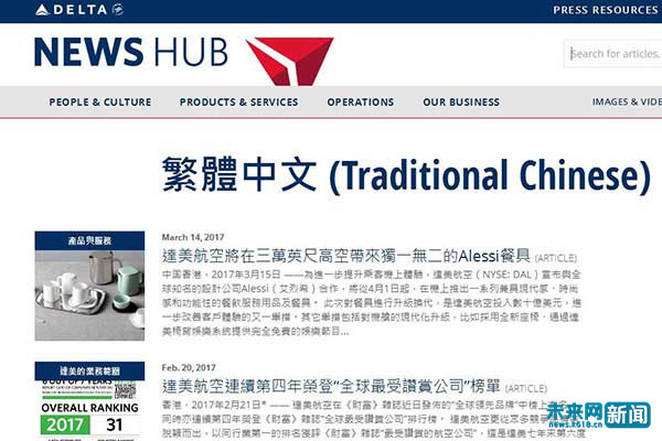 达美航空:仅在简体中文网站致歉 繁体中文网站并未见到