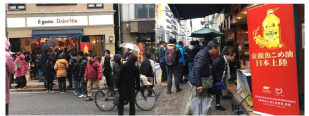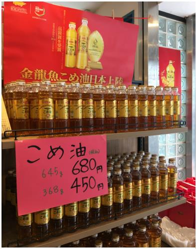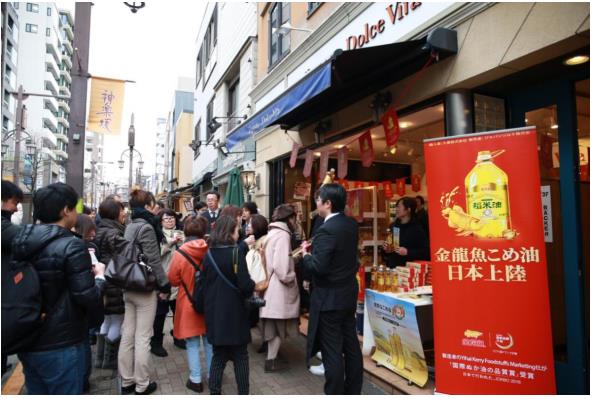 金龙鱼稻米油在日本进口超市第一天上市,引起东京市民排队购买