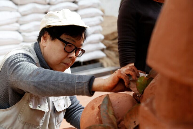 她喜欢与泥巴、青铜白石为伍。到现在年近八十,仍精力充沛,塑捏敲打,一玩就是七八个小时。