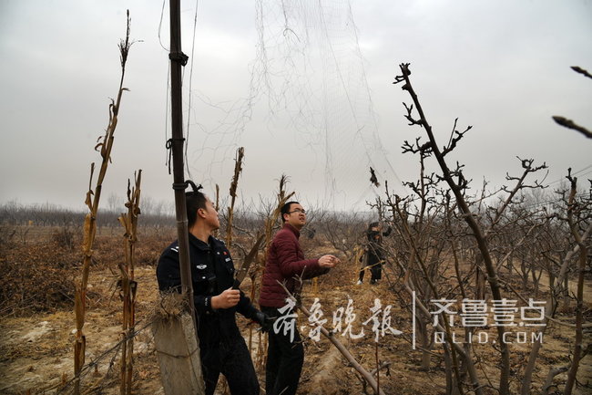 “我们接群众举报称,在105国道福山陵园附近的果园里有人架网捕鸟。”据德州市森林公安局执法人员介绍,接到举报后,市林业局森林公安局联合市野生动物保护站、市森林资源稽查支队迅速赶赴现场,在105国道西侧的两处果园里发现了大量架设的粘网。