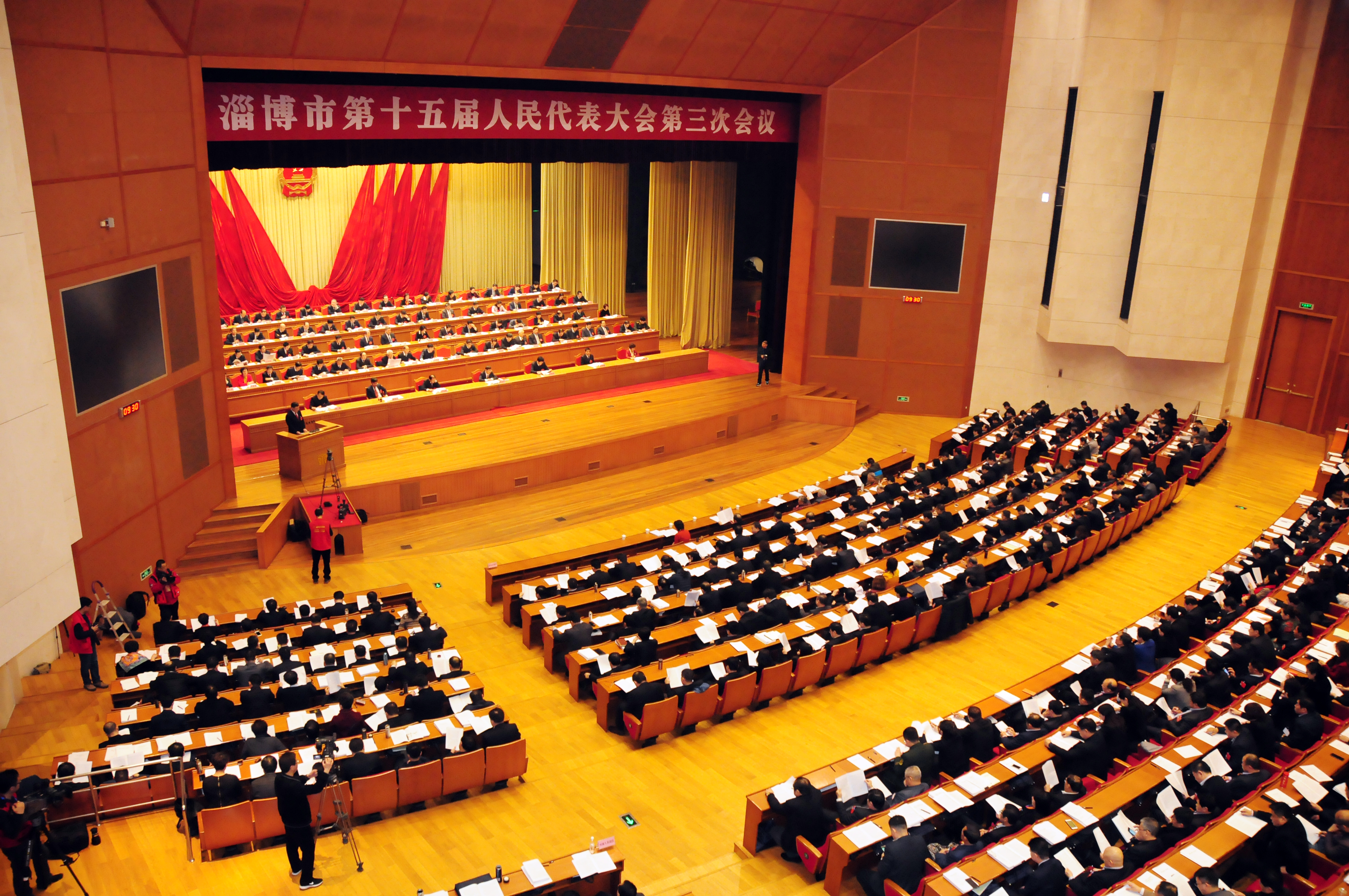 18日上午,淄博市第十五届人民代表大会第三次会议在齐盛国际宾馆会议中心大会堂隆重开幕。