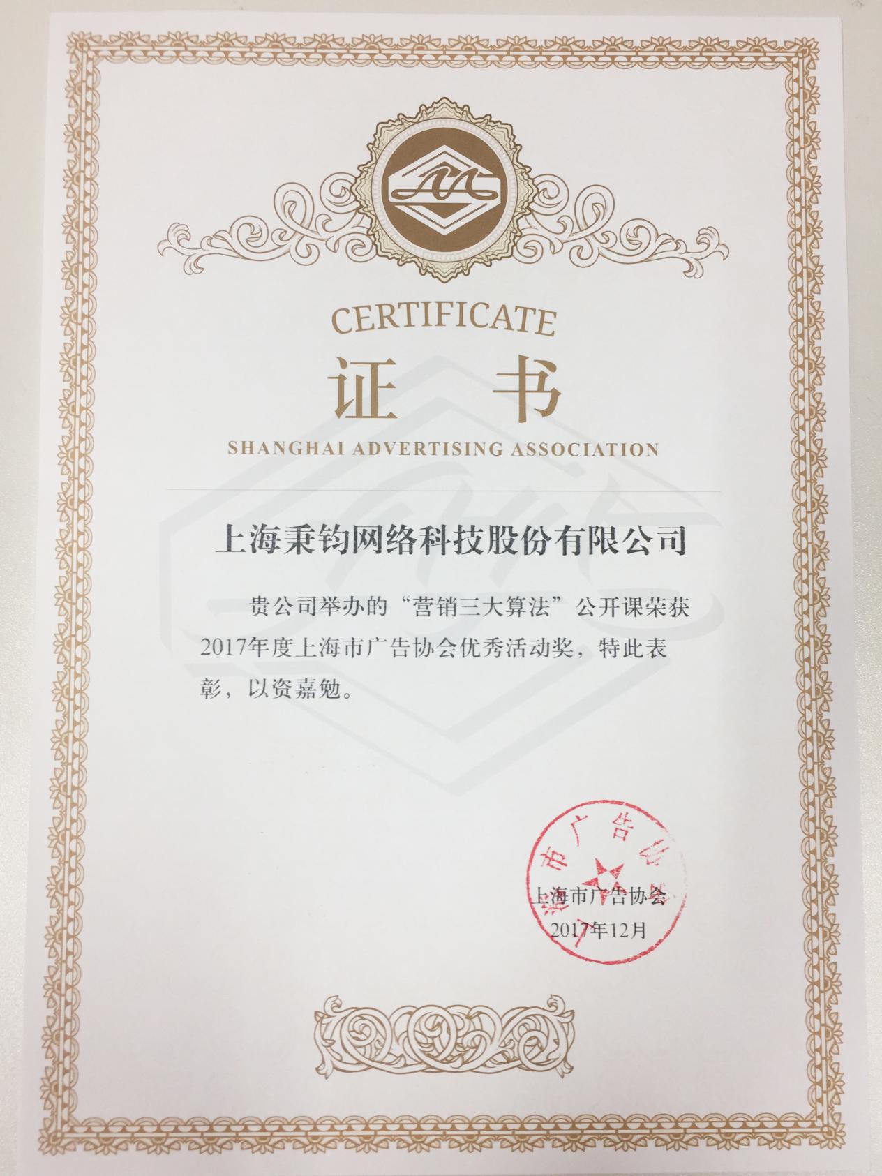 1月22日,上海市广告协会公布了“2017年度上海市广告协会贡献奖”获奖名单,上海秉钧网络科技股份有限公司获得奖项荣誉,CEO刘学林亦荣获“2017年度上海市广告协会个人贡献奖”,在“优秀活动奖”的评选中,由红人点点作为发起单位的“营销三大算法”公开课赢得优秀奖!