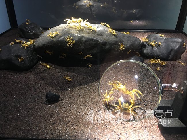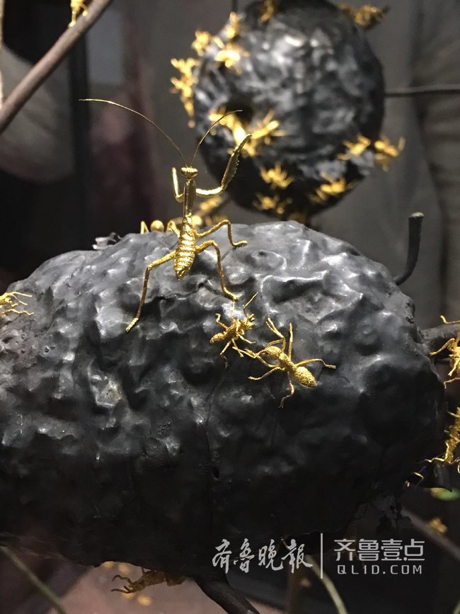 “17岁在台北故宫看到核舟记等珍贵文物,受到启发,19岁开始研究蚂蚁,开始雕刻蚂蚁。但是年轻时候难免心浮气躁,就去看佛经静心,慢慢就能静下心来雕刻,我并没有专门学习精工雕刻,都是自己摸索,自己学习。”吴卿说道,“原来我用木头雕刻,但是木头总会腐朽,若要永恒,只有用黄金。用我有限的生命做无限的延续,这就是我创作的态度。”