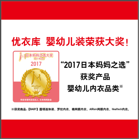 优衣库婴幼儿内衣品类荣获 “2017日本妈妈之选大奖”