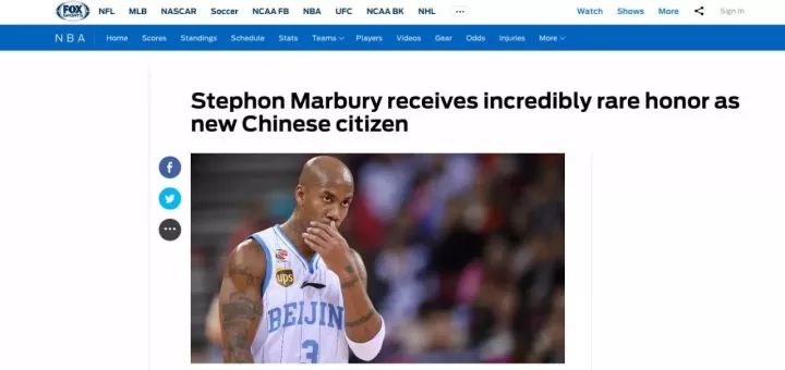 美国福克斯体育报道这一新闻时,标题更是夸张:“斯蒂芬·马布里拿到了中国绿卡,这是多么难以置信的至高荣誉!”