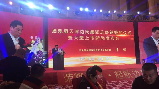 1月16日,酒鬼酒天津总经销签约仪式暨大型上市新闻发布会在万丽天津宾馆隆重举行。酒鬼酒股份有限公司党委副书记、副总经理、酒鬼酒供销有限责任公司总经理李明,边氏集团总经理边永顺等领导以及嘉宾出席,共襄盛举。