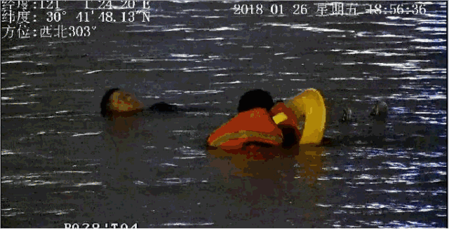 袁晓骏是个90后的小伙子,年轻力壮,第一个游到了男子的身边,一把抱住他,并用救生绳将他绑住,此时,这名男子已经体力不支,身体也开始侧翻过来。