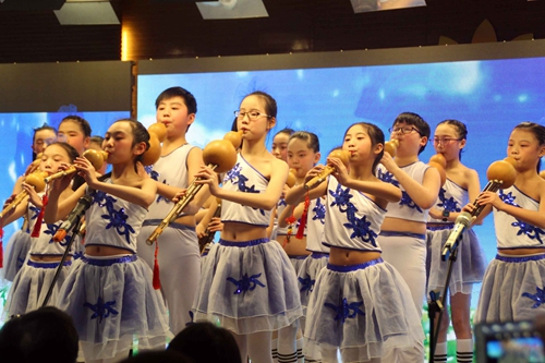 在新春音乐会现场,陈小明、孙巧玲领衔协会旗下教师及学生纷纷进行了精彩的节目表演。《月光下的凤尾竹》、《鸿雁》、《吉祥的祝福》等脍炙人口葫芦丝曲目优美动听。由邹容小学师生表演的原创超七孔多声部节目《茉莉花变奏曲》更将现场气氛推向高潮。
