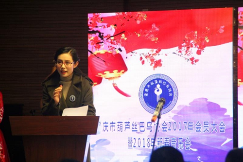 在新春音乐会上,副会长兼秘书长孙巧玲汇报2017年年度工作及2018年规划。孙巧玲介绍,2017年,重庆的葫芦丝巴乌得到极大的普及与发展。全市有20多所学校,5万余名学生学习葫芦丝巴乌乐器。其中区县的学生表现尤为出色。酉阳民族小学、綦江营盘山小学、忠州三小、渝中区邹容小学等学校在葫芦丝普及教育上取得优秀成果。葫芦丝学员参加华龙网寻找重庆文艺之星葫芦丝专场赛、中国教育电视台校园春晚、全国葫芦丝巴乌邀请赛等均获得优异成绩。葫芦丝巴乌协会副会长单位邹容小学、龙都小学、永川12中学、龙池初级中学被国家教育部评为第二批全国中小学中华优秀文化艺术传承学校。