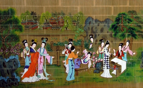 绘帘通常采用传统的国画绘画方式,但是因为竹子的吸水性与宣纸有很大差异,再加之涂抹了清油,对画家的画工是一个比较大的考验,在竹帘上作画主要是点、铺、蘸。