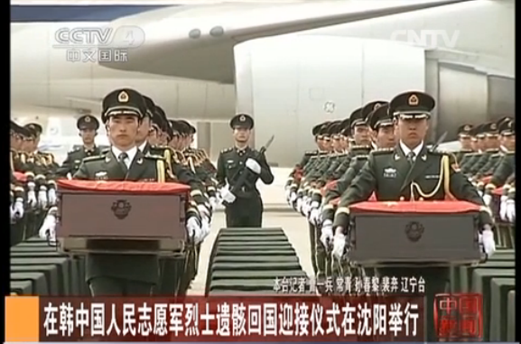 据悉,2014年03月,第一批在韩牺牲的437位中国人民志愿军烈士的遗骸移交归国。