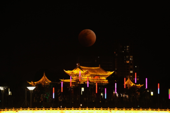 你看到了吗?“超级蓝血月全食”现身云南各地