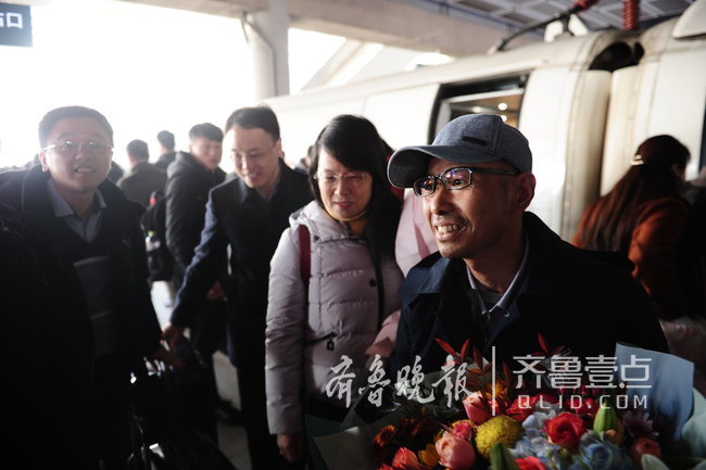 战胜病魔,刘庆良在妻子及公司同事陪同下回到济南。齐鲁晚报·齐鲁壹点记者 戴伟 摄