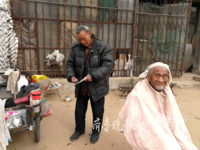 2月10日下午,壹粉“842960”向齐鲁晚报新闻官方客户端齐鲁壹点情报站发来一组乡村大集上令人勾起无限回忆的照片,79岁的剃头匠老郑,当过5年兵,帮人剃头近60年,游走于泰安大汶口镇、良庄镇、房村镇等周边大集,专门为村民剃头。