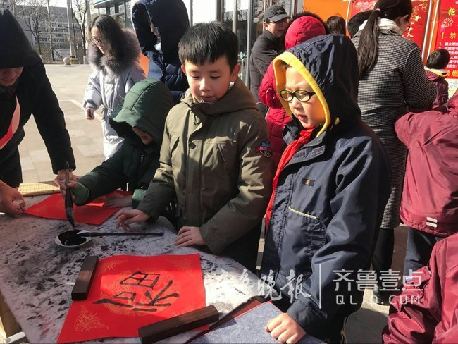 在活动现场,他们分为展板解说组、春联书写组、邀请签名组、礼品发放组、宣传报道组等五个小组开展活动,每个小组的活动都井然有序。展板解说组提前设计制作了主题展板,内容包括济南禁燃规定、禁燃区域、禁燃标语、禁燃常识、燃放危害、燃放处置、文明济南等,文图配合,简洁鲜明,让人过目不忘,再辅以孩子们绘声绘色的解说,宣传效果良好。春联书写组围绕济南的山泉湖河等优美的自然景色和深厚的历史文化底蕴,挥毫泼墨,在红色的宣纸上书写身为济南人的自豪和祝福,并把美好的祝福送给同样珍爱济南环境的人们。邀请签名组专门设计了“拒燃烟花爆竹,珍爱碧水蓝天”承诺签名册,并邀请过往的行人签名,承诺不燃放烟花爆竹;孩子们的认真与热情感动了许多过往的行人,从白发苍苍的老人到刚学会写字的儿童,短短一小时之内,就有一百多人签名承诺。礼品发放组准备了火红的灯笼作为新春礼物送给签名承诺的市民,并进行“拒燃烟花爆竹,珍爱碧水蓝天”的宣传。宣传报道组则用文字、镜头等记录下这活动中的一幕一幕,并将在后续活动中以绘画、手抄报的形式继续拓展和深入宣传这一实践活动。