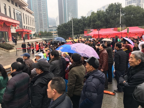 当日的演出现场,下起了小雨,为迎接春节的到来,重庆市歌剧院(重庆交响乐团)的艺术家们与广大市民欢聚在渝北,共赴演出。舞蹈《中国新时代》拉开了当天演出序幕。重庆市歌剧院院长、二胡演奏家刘光宇为渝北区市民奉献了一首经典的二胡曲目《赛马》,走心的演奏让现场观众感受到了二胡的美与力,尽管下着雨,但大家的热情不减,目不转睛地注视着舞台,脸上洋溢着微笑,现场掌声、欢呼声、喝彩声不断。此外,演员们还演绎了女声独唱、男声独唱、动感提琴、川剧变脸、魔术等10余个内容丰富、形式多样的节目,让市民乐开了花,不少观众对台上表演者竖起了大拇指。