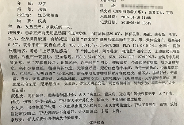 13日一早,朱成凤又给陶园测了一次体温,仍然是高烧,陶园向公司请了假和母亲去医院。一系列血常规、胸部X光检查下来,并未发现异常。除了高烧,陶园也没有任何感冒的症状。期间医生一度认为是荨麻疹引起了高烧,开了点退烧药回家静养。