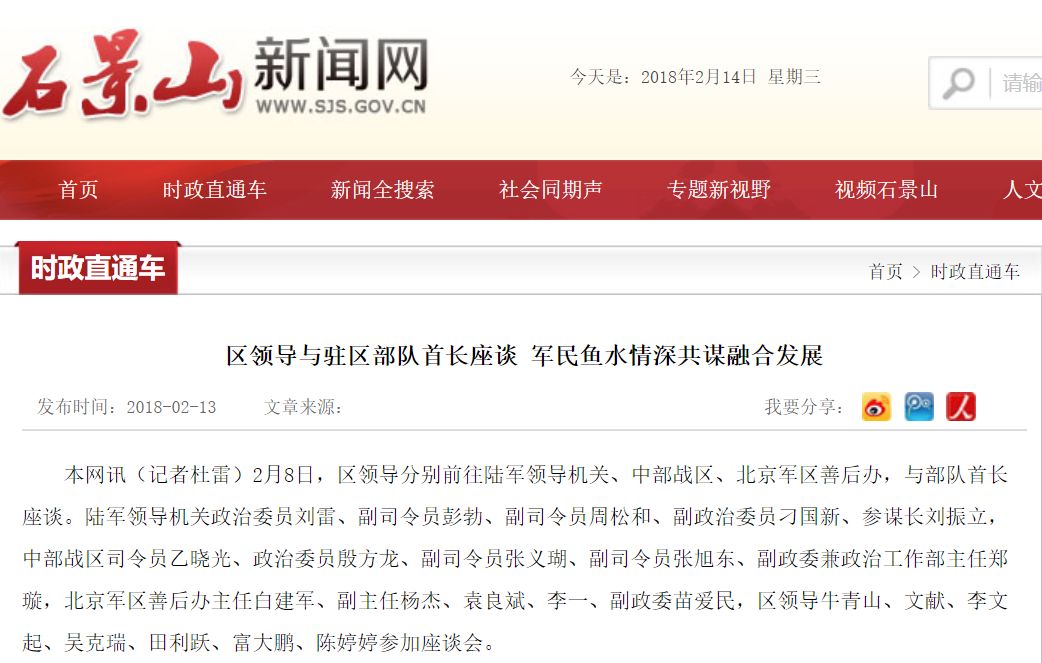 例如这则发布在石景山新闻网上的新闻↓↓↓