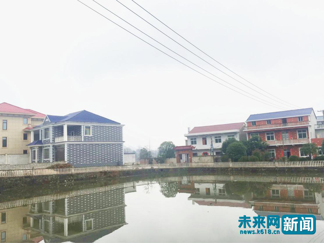 陈台公路旁的水塘与民房。未来网记者 程婷 摄