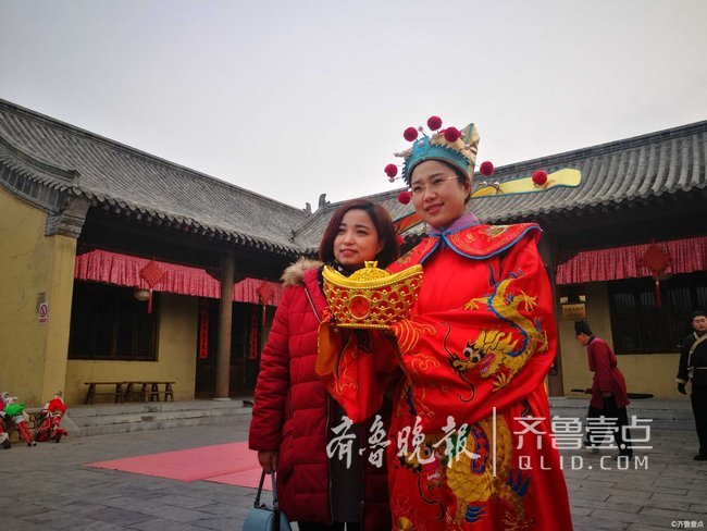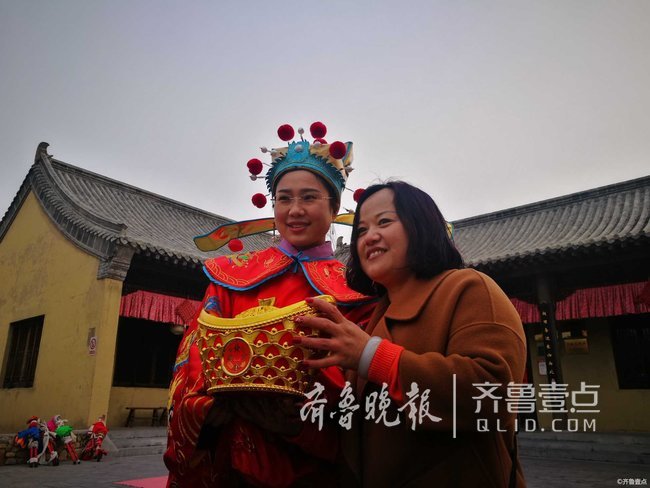 2月20日,正月初五,又是一年财神节,壹粉“军统宝哥”向齐鲁晚报新闻官方客户端齐鲁壹点情报站发来图片,烟台招远淘金小镇财神节上,一位女工作人员披红衣,戴顶戴花翎,一身财神装扮,为游客送福送宝。