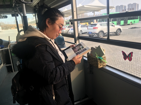 原来这个充满创意的点子是郑州公交二公司五车队B18路车长李鹏飞提议的,李鹏飞是名退伍兵,之前在部队是名文书,经常舞文弄墨,喜欢读诗词。退伍之后到公交公司成为一名车长,并没有放弃之前的爱好,也经常写点小文章。今年春节在电视上看到经典咏流传这档超火的电视节目以后,突发奇想能否把这个节目搬到车厢里,让乘客在坐车的碎片时间里,也能感受到古典诗词的魅力。春节过后他就把自己的想法汇报给车队,“鹏飞的想法特别好,车队全力支持他。”车队书记毛文琴说。搜集整理图片,布置车厢,固定精美书盒,放置书籍,具有特色的车厢两天布置完成,一上路就收到乘客好评。在农业路360上班的李女士经常乘坐这趟车,她专门致电车队办公室:经常乘坐公交车,也坐过许多主题车厢的公交,但是这个车具有诗情画意,印象深刻,车长在做这个车厢的时候应该是很走心的,真的感觉和好、很舒服。