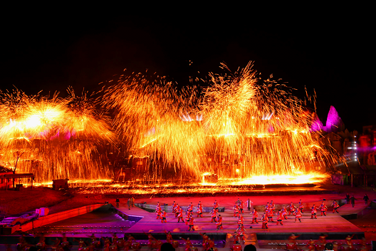 这里不仅有千余民间艺人打造的近百种山西特色民俗巡演,还有着创造吉尼斯记录的千人同时打铁花节目《千年铁魂》,“烘炉入夜熔并铁,飞焰照山光明来”用这句话来形容司徒小镇的千年铁魂再贴切不过。