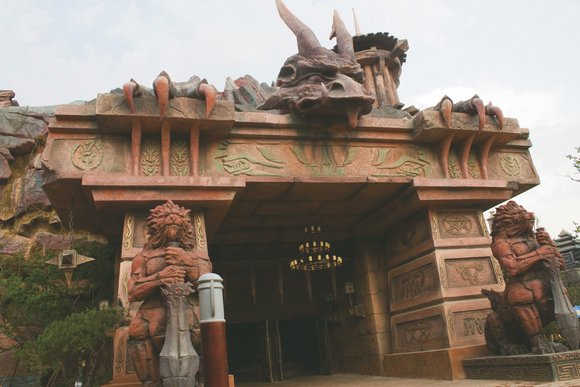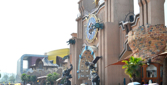 到了之后才知道嬉戏谷是环球动漫游戏为主题的游乐园,院里到处都是和游戏动漫有关的元素,主题性很强,可玩性也很不错,把我男朋友激动的。刚看到大门口凶神恶煞的雕像,男票兴致勃勃地告诉我这个是什么什么,反正都是游戏里的。我有点知道他为什么这么着急的要带我来这里了。