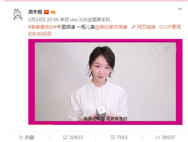 原标题:春纪视频上线,与周冬雨一起花式告白