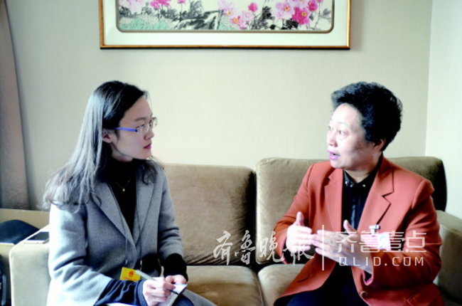 全国人大代表、济南阳光大姐服务有限责任公司董事长卓长立接受齐鲁晚报记者采访。