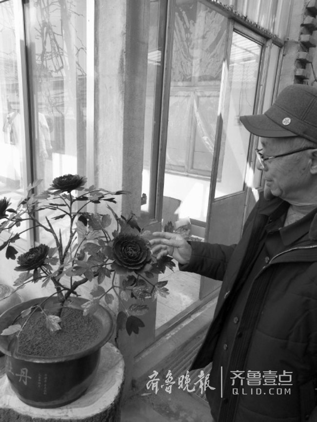 老牛和儿子小牛一起打造的铁牡丹惟妙惟肖,仿佛低头就能闻到花香。齐鲁晚报·齐鲁壹点 见习记者 刘晓 摄