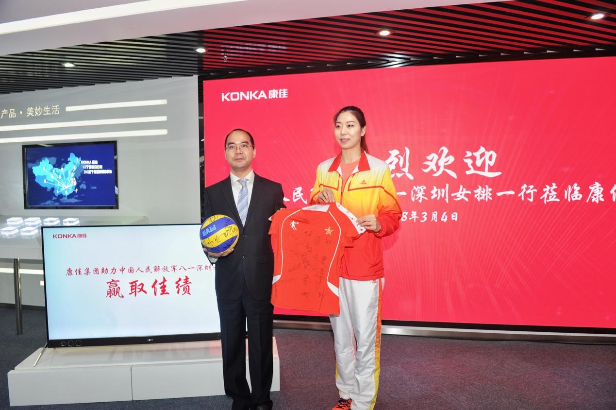 2018年3月4日,八一深圳女排来到康佳集团深圳总部参观、慰问。据八一深圳女排领队张迪介绍,自2015年八一落户深圳以来,每年都会与深圳的军队、学校、政企进行交流学习,以军地共建、军民互融的思想为指引,力求为深圳经济人文发展贡献力量。