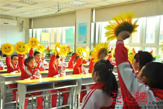 金灿灿的向日葵在手中挥舞,小合唱《我们多么幸福》唱响在教室里,开心、自信的笑容洋溢在正在歌唱的孩子脸上。