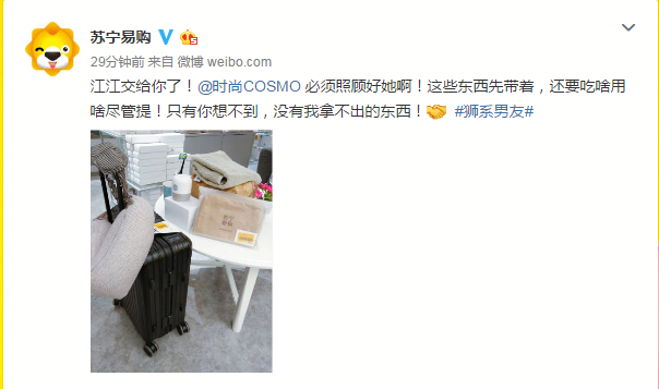 记者了解到,所谓神秘礼物其实是江疏影的“狮系男友”苏宁易购嘱咐此次巴黎时装周的合作伙伴《时尚COSMO》,带给江疏影的“宠爱礼盒”,内含小Biu音箱、戴森吹风机、小熊煮蛋机等一系列潮流居家智能产品,连江疏影最爱的火锅也千里送至巴黎,真可谓衣食住行全都在内,周到万分,“只有你想不到,没有我拿不出的东西!”